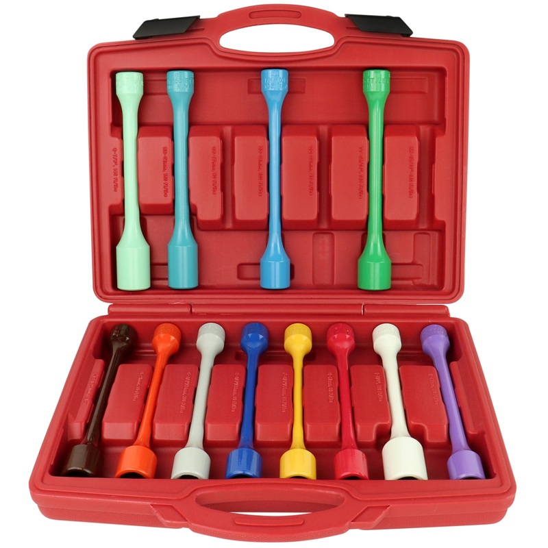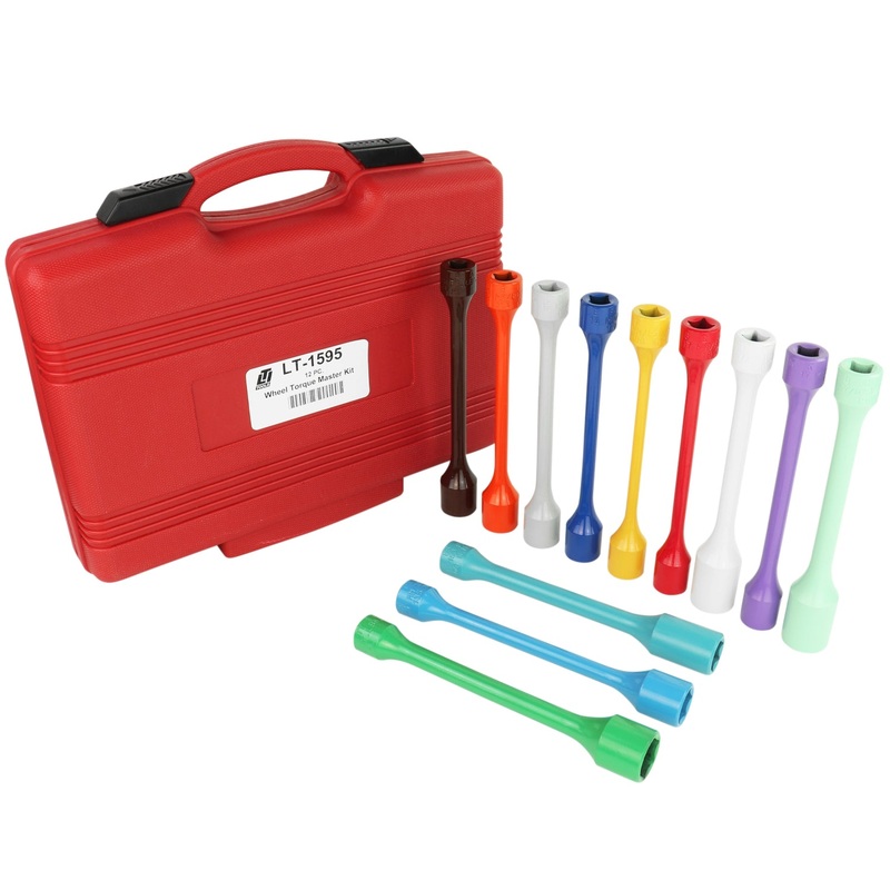 The LT1595 is a 12 piece Wheel Torque Master Kit. This is our most complete kit available today. These tools are designed for use with a drive impact wrench and come in a wall mountable carrying case with a yearly updated color wall chart (LT-1500WC).