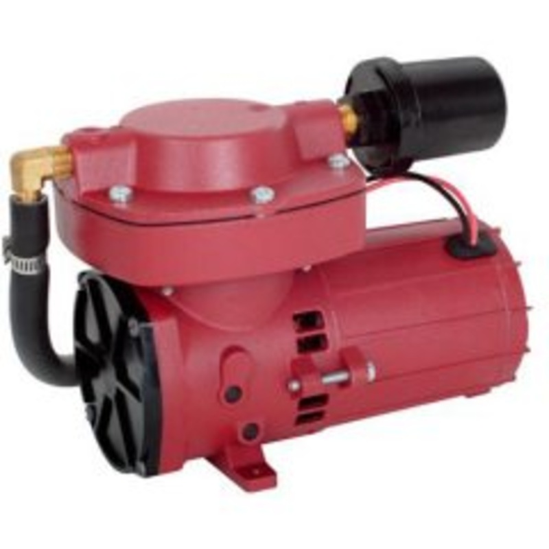 This is an excellent value in an American-made, oilless, 12V compressor. This very popular DC air pump is great for mobile use, emergencies and even solar power applications. Specially designed for aquaculture, providing high volume at low pressure (10 psi max). Features ball bearing construction and low amp draw with replaceable diaphragms and brushes for extended life (brushes on motors wear out after about 2,000-3,000 hours of use).