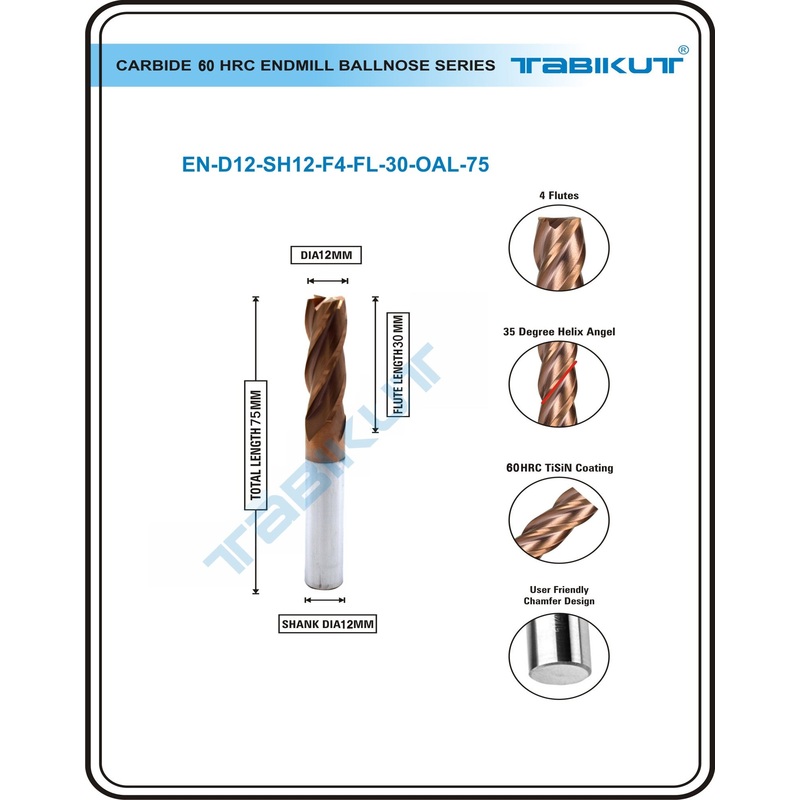 12mm Carbide Endmill 60 HRC 4 Flutes