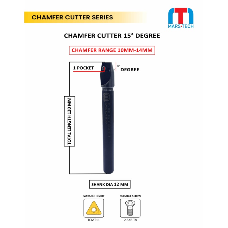 Chamfer cutter for 15 degree suitable to TCMT1102 insert