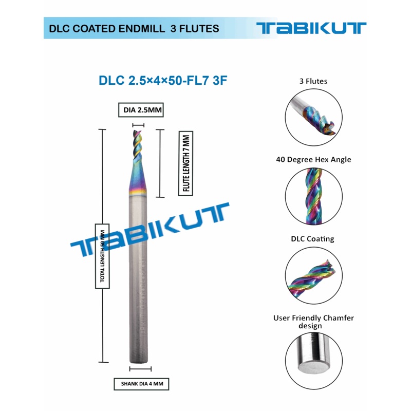 Advantage of DLC coating is it reduce the friction and make the chip evacuation more smooth and better surface quality
