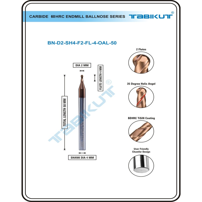 2 Mm Carbide Ballnose 60 HRC PACK OF 2