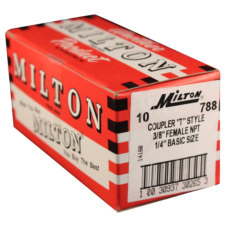 3/8″ FNPT T style couplers offer a maximum inlet pressure of 300 PSI and are ideal for industrial application. These brass couplers have air flow of up to 40 SCFM and are complete with a Buna-N seal.