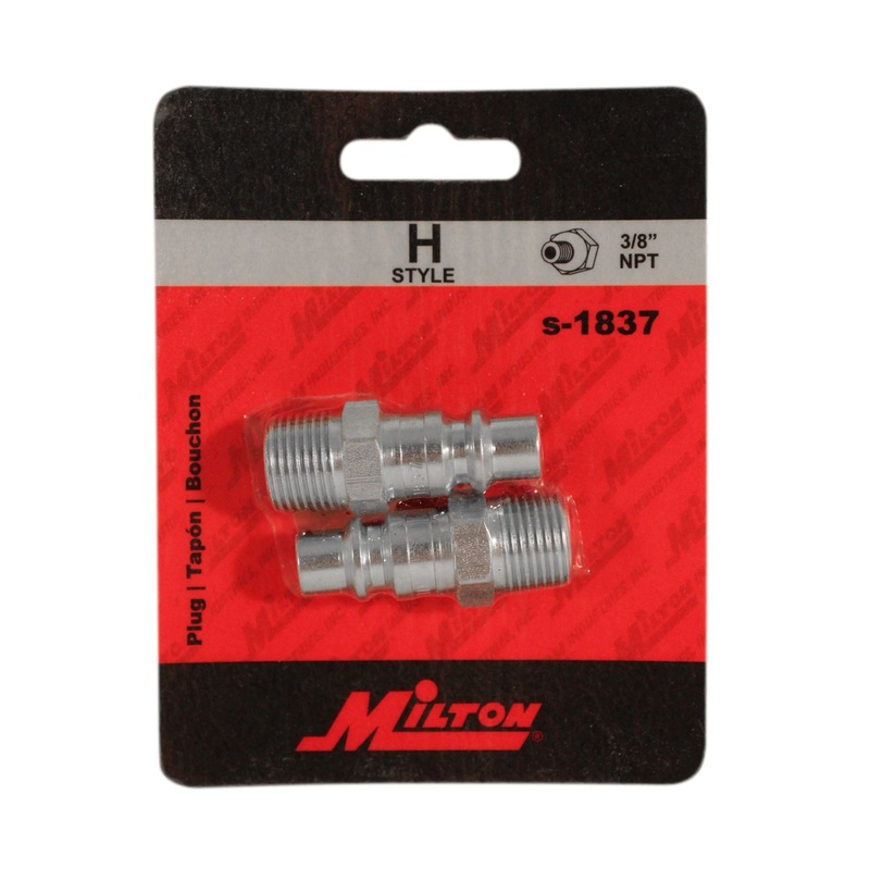 3/8″ MNPT H style plugs are made of case hardened steel and plated to resist rust. H style plugs have a basic air flow size of 3/8″ and a Maximum inlet pressure of 300 PSI. These plugs are perfect for larger tool applications requiring more SCFM.