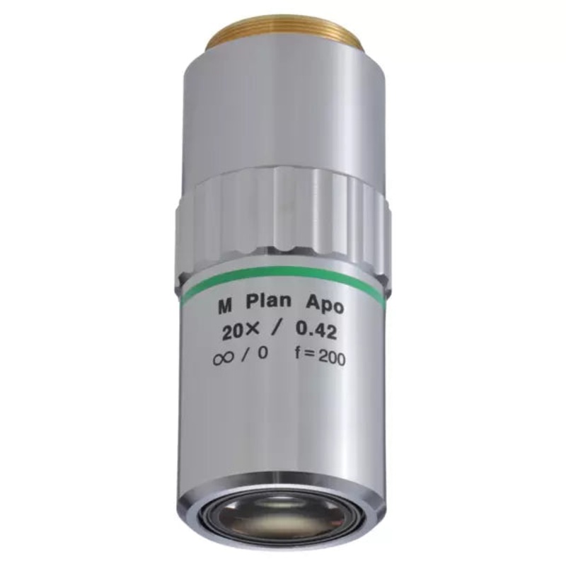 M Plan Apo for Bright Field ObservationCompatible with microscope types VMU / FS-70 / MF-U / Hyper MF-UNote: To avoid optical flare in use of coaxial illumination 1x objectives should be used togehter with polarisation unit on microscope and attached 1/4 wavelength plate.