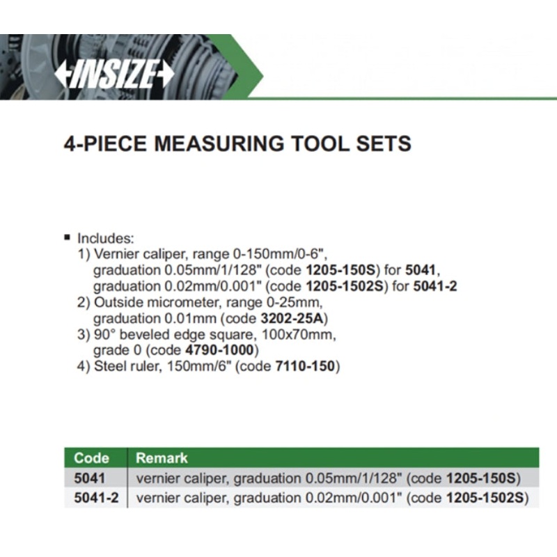 5042.04-Piece Measuring Tool Set | Insize 5042 Series | Digital Caliper, Outside Micrometer, Measuring Square, Steel Rule