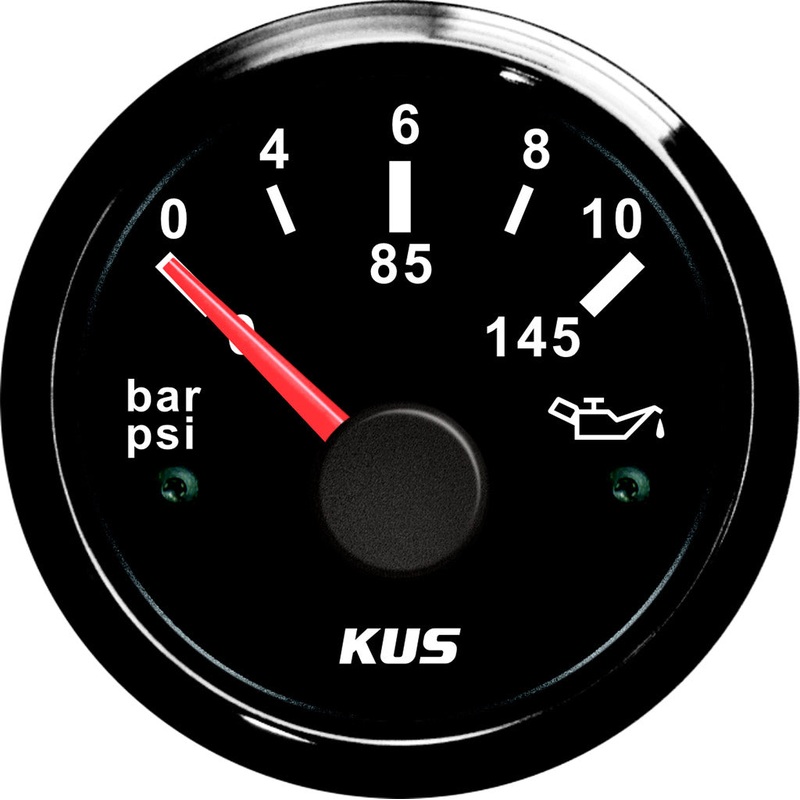 GTS’s range of KUS engine monitoringoil pressure gauges comes in a 52mm dial, with an output of 10-180 ohms usable in both 12 and 24 volts. Your options include either 5 bar or 10 bar/145 psi.