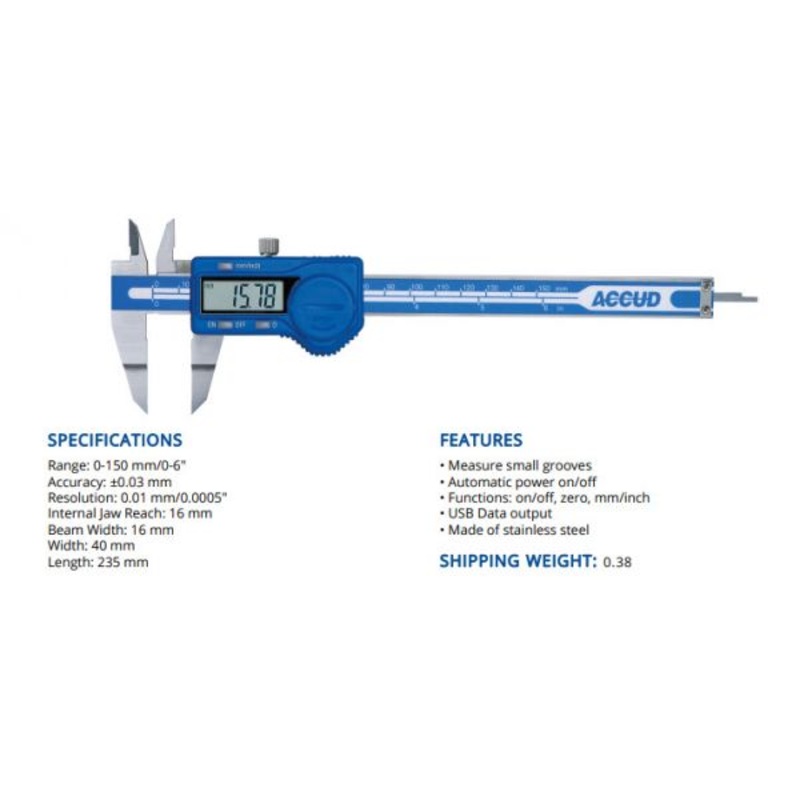Accud Digital Accud Blade caliper 0-150mm Resolution .0005/.01mm 153-006-11
