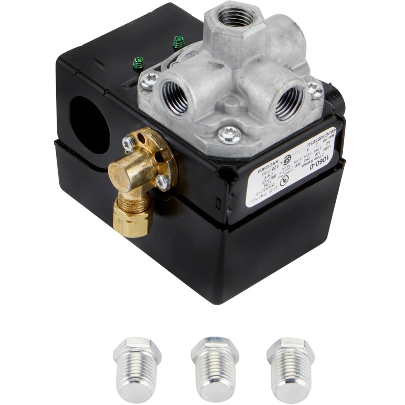 Equipped with four 1/4″ FNPT ports complete with plugs, this pressure switch also features an auto-off disconnect lever and a rotating unloader, catering to applications requiring these modifications. Additionally, it is UL listed and CSA certified, guaranteeing reliability and safety. Upgrade your compressor system effortlessly with this reliable and versatile pressure switch.