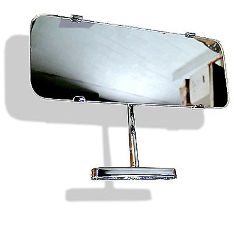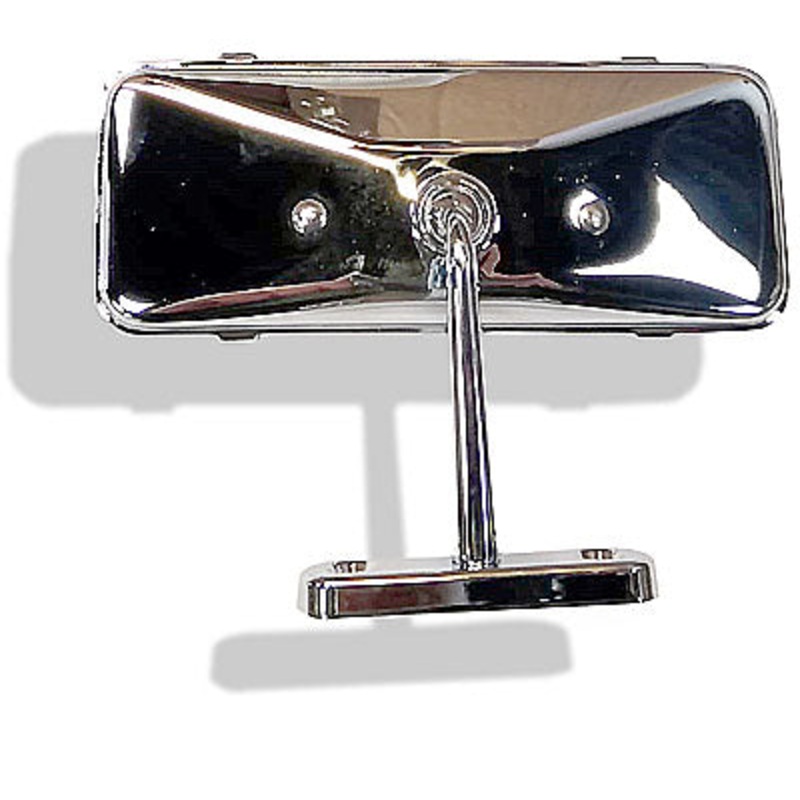 Traditionally fitted to the MGA this beautiful lustrous chrome mirror can be fitted to most classic cars. the mirror head is 125mm (5″) wide x 50mm (2″) high and the fixing holes are approximately 42mm apart. The mirror stands approximately 90mm high.