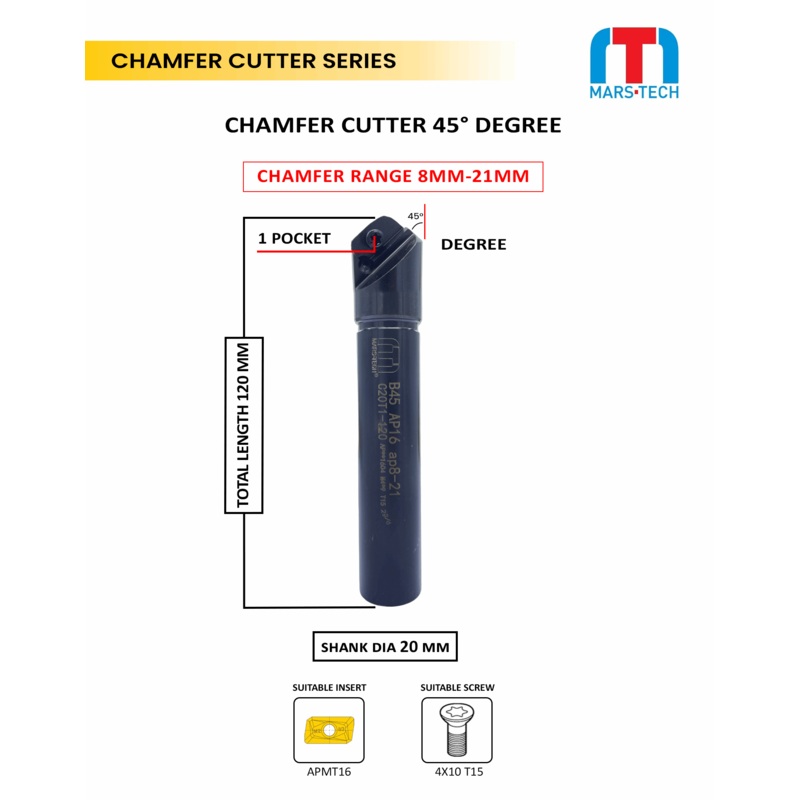 A chamfer mill, or a chamfer cutter useful for many purposes a drill slop , remove burrs from drill hole , 45 degree angel needed for any machining requirement.