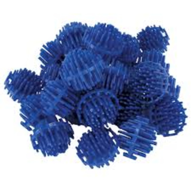 A compact polyethylene media. 98 sq.ft. of surface area per cubic ft. Round shape with positive buoyancy. These balls, with their small void spaces, are popular for clean water applications like tropical fish aquariums.