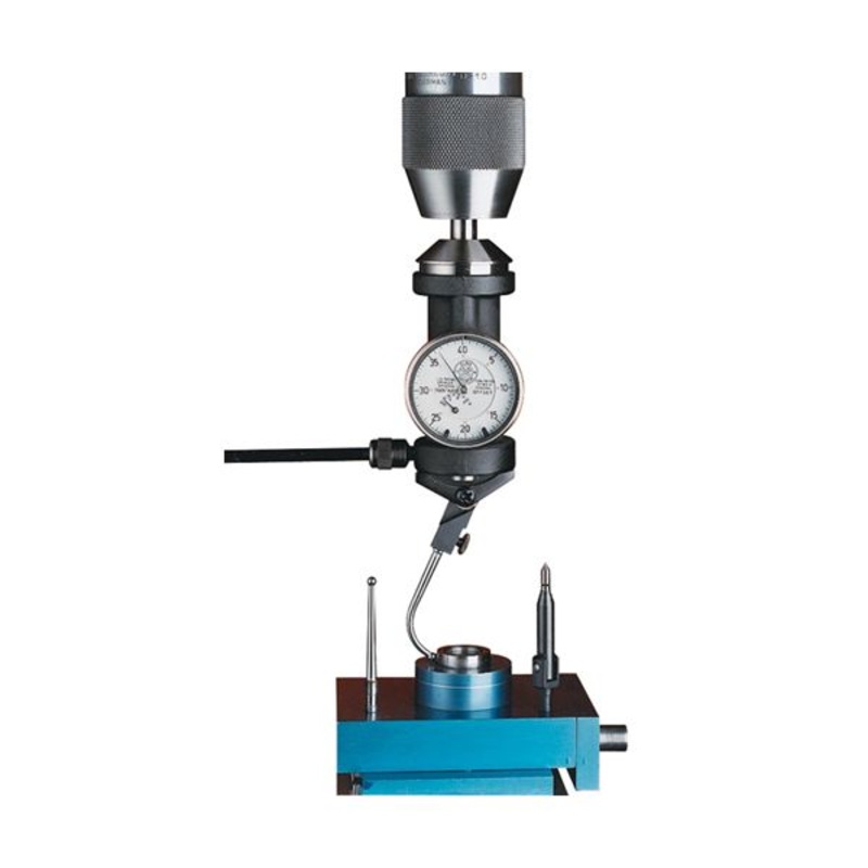 The face of the indicator remains stationary in any desired position while the machine spindle rotates, thus leaving the operator with both hands free to accurately position the machine table by coordinated movement of the table positioning controls while observing the indicator hand reaction. (Indicator hand travel diminishes as location error is reduced to a point where the hand stands still, indicating coaxial alignment of the diameter being checked with the spindle axis)