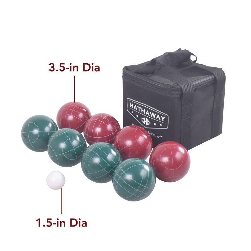 The Hathaway Bocce Ball game is a great way to enjoy the outdoors while having some exciting competitive fun. One of the oldest forms of lawn bowling, bocce ball is a fun easy game to play for all ages. The game originated in Italy and has now become a very popular game worldwide. This set includes 8 bocce balls, 4 for each team, and one white pallino target ball. The entire set is enclosed within a durable nylon carrying case for easy transport and storage.