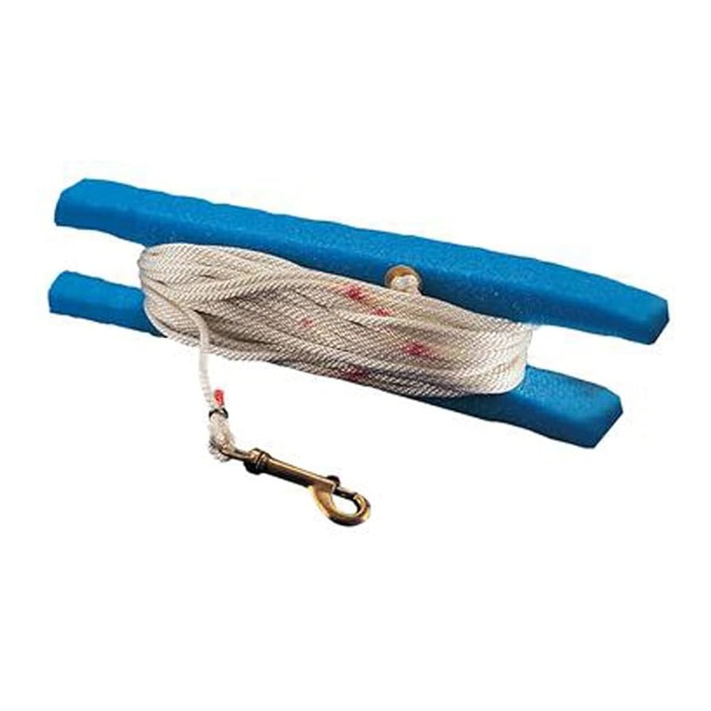 Line features a spring clip for quick attachments to plankton nets, sechhi discs, weights, etc., and is wound on a foam spool which doubles as a flotation device to prevent accidental loss of line if dropped overboard.