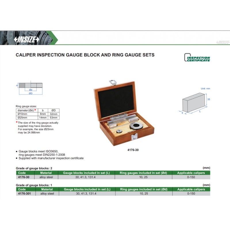 4176-301Caliper Inspection Gauge Block and Ring Set for 0-150mm Calipers | Insize 4176 Series | Grade 1 or Grade 2