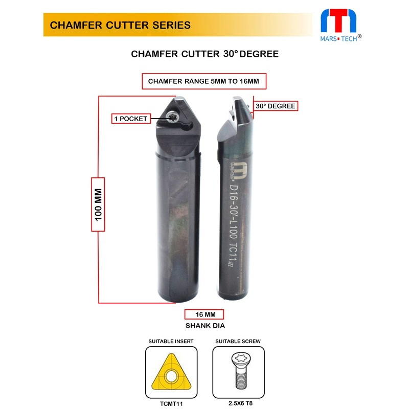 CHAMFER CUTTER AFM30-TC11-C16-Z1-DIA 5 TO 16
