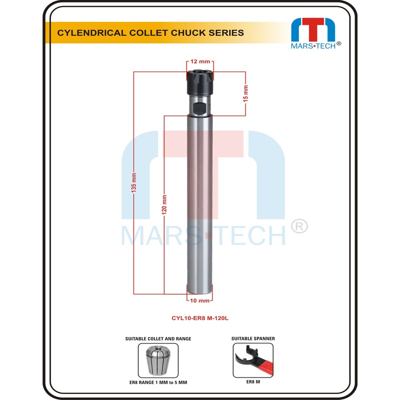 Cylindrical Shank / Straight Shank Collet chuck also called Baby collet chuck because of small size and same chuck which comes in BT40 or big tapers , its very useful to increase length of a chuck and also used in turning machine where you have turret sleeve size smaller but straight, its also useful to OEM of machines like Multi Spindle machine and it comes in various sizes to fit in , from Smallest 8 mm to 40 mm are commonly available. This is made from high quality steel and hardened upto 50 hrc for long lasting life