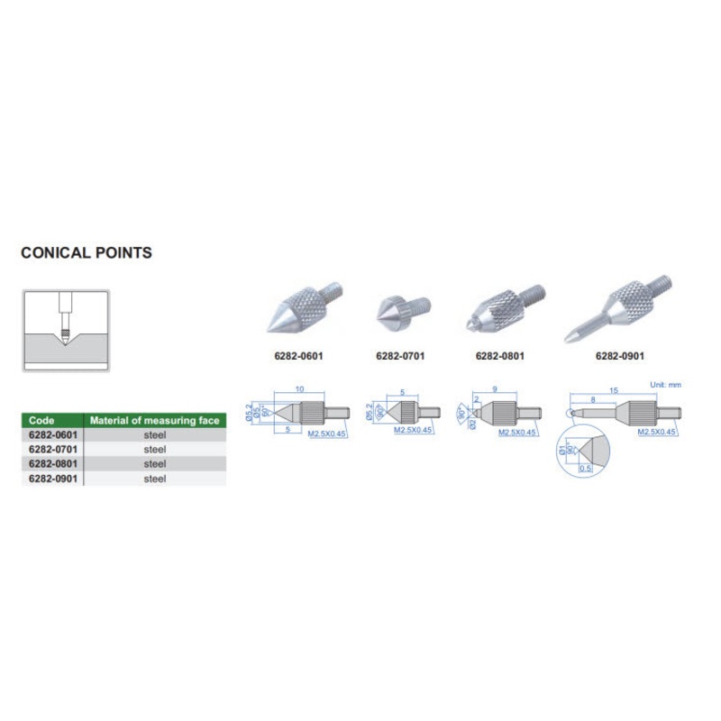 Conical Contact Point INSIZE 7.14mm 6282-0702, 4 x 48 UNF Steel 90 deg