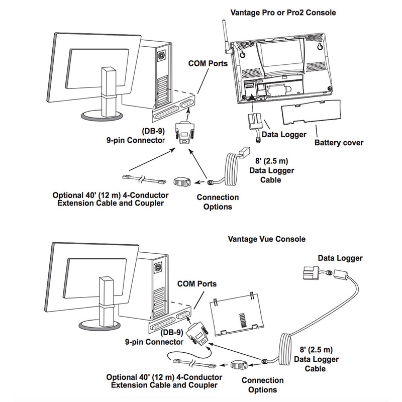 Data logger fits neatly into all of the following models: Vantage Pro, Vantage Pro2, Vantage Vue, and Weather Envoy.