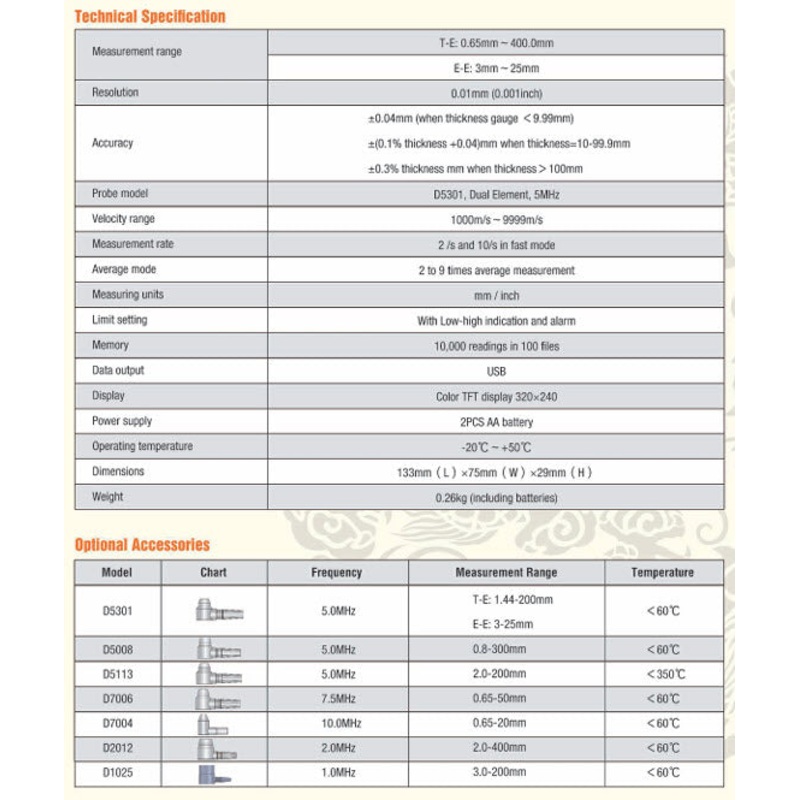 - Measuring Mode: (P-E) pulse-echo and (E-E) thru paint.