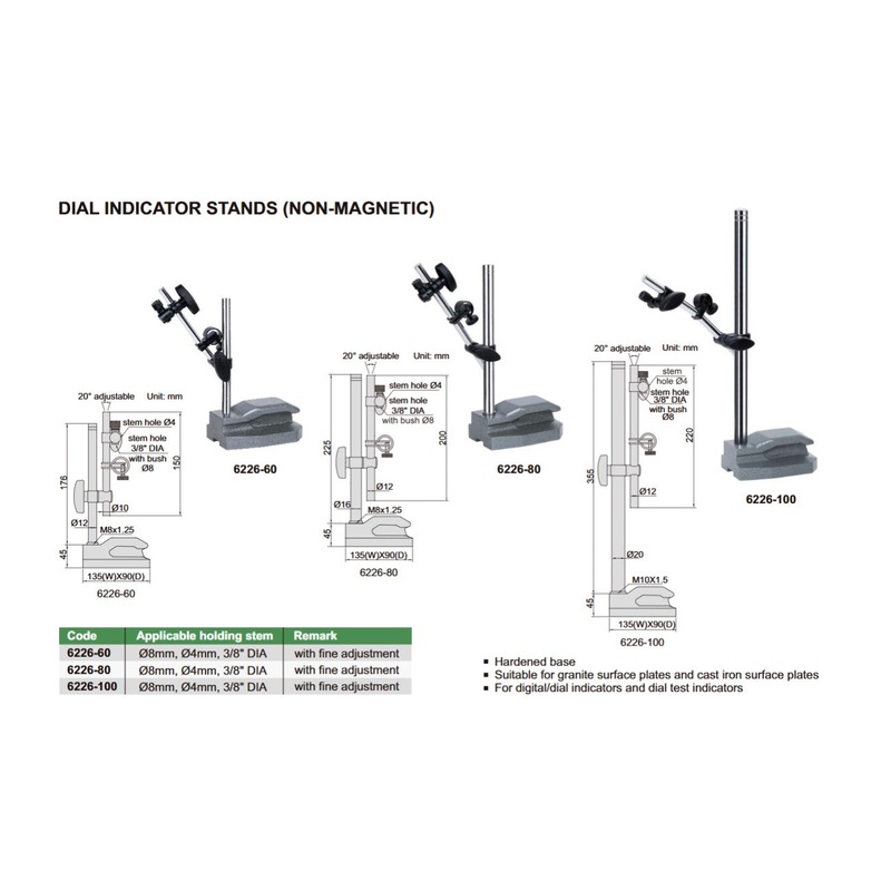 Dial Indicator Stand with Fine Adjustment (Non-Magnetic) | Insize 6226 Series
