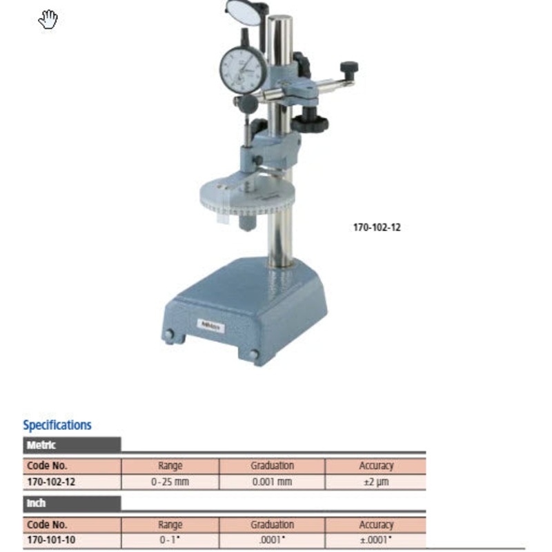 Dial Indicator Tester Metric, 0-25mm, 0,001mm 170-102-12