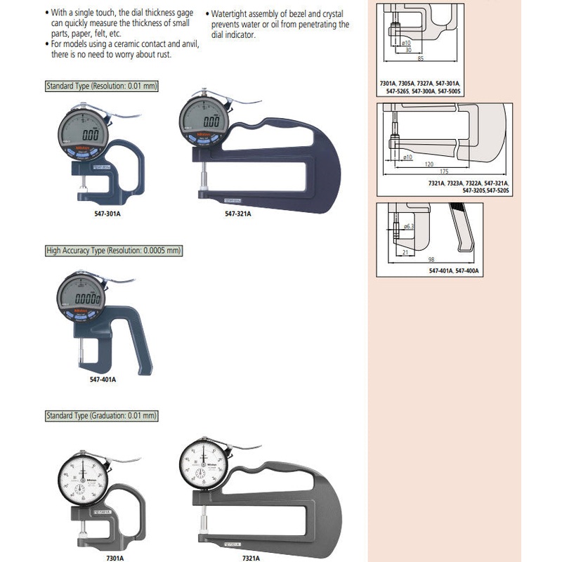 This Dial Indicator Thickness Gauge enables you to measure tube wall thickness, film/paper etc. with flat contact points, resp. lens thickness or groove depth.