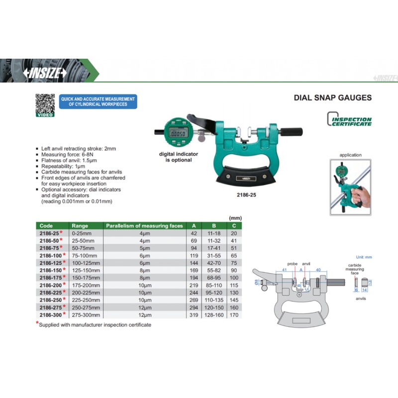 2186-100Dial Snap Gauges | Insize 2186 Series | Range 0-25mm | 25-50mm | 50-75mm | 75-100mm