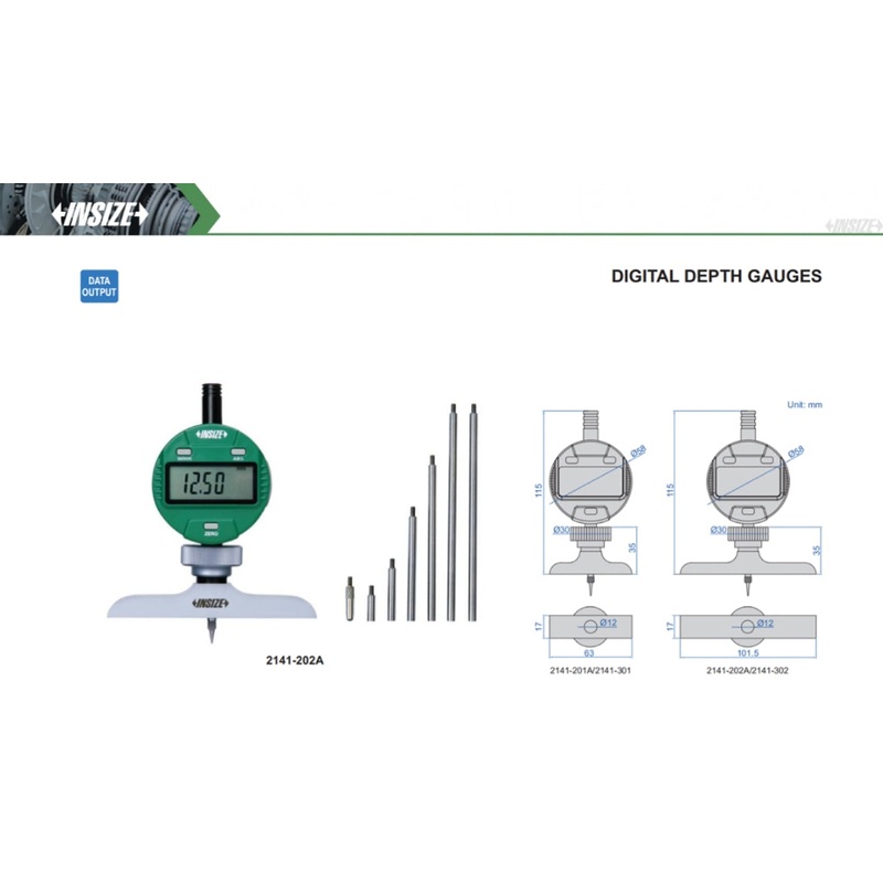 2141-302Digital Depth Gauges | Insize 2141 Series | Range 0-300mm/0-12 | Resolution 0.01mm/0.0005 ; 0.001mm/0.00005