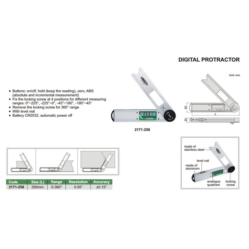 2171-250Digital Protractor | Insize 2171-250 | Range 0-360 Degree | Resolution 0.05 Degree