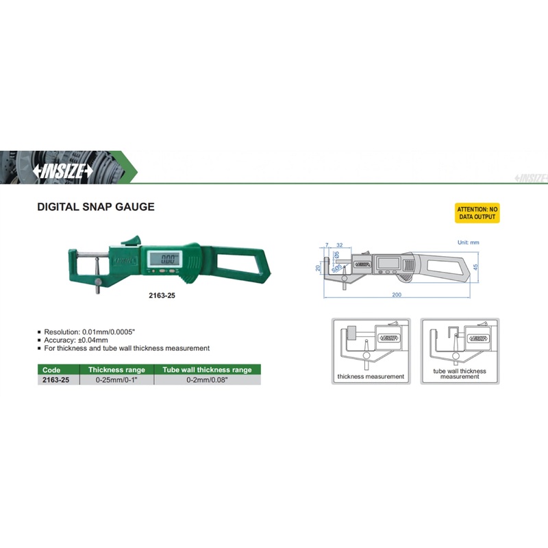2163-25Digital Snap Gauge for tube wall thickness measurement | Insize 2163 Series | 0-25mm/0-1