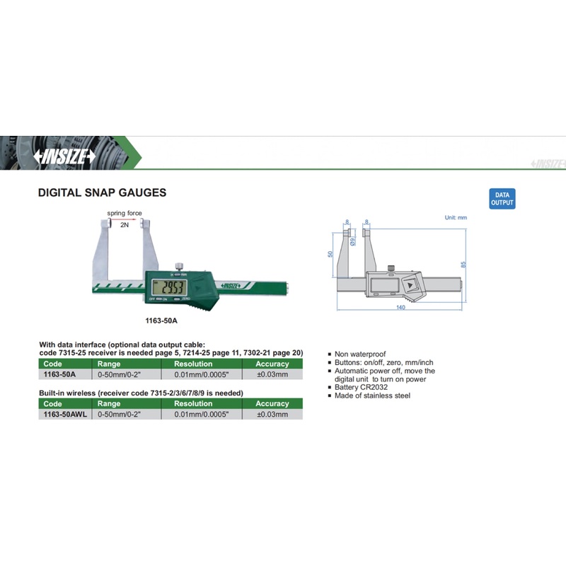 1163-50ADigital Snap Gauge | Insize 1163 Series | 0-50mm/0-2