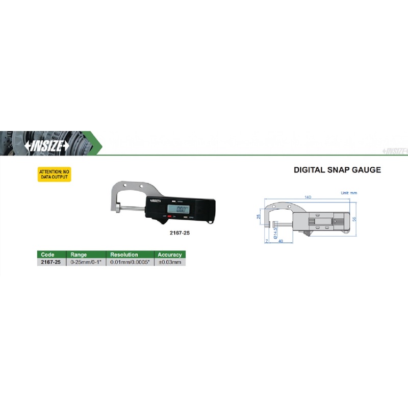 2167-25Digital Snap Gauge | Insize 2167 Series | Range 0-25mm/0-1