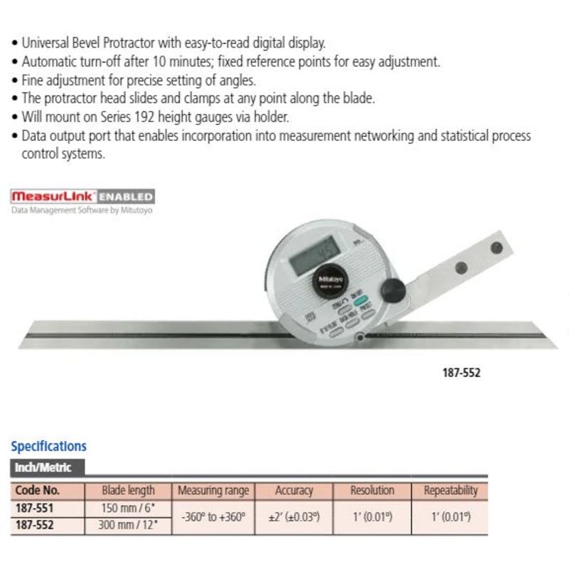 This is a Digimatic Universal Protractor with data output that offers you the following features: