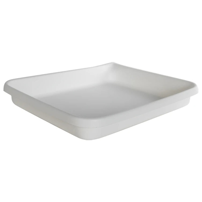 These clean, white, high-impact plastic trays are almost unbreakable. They are big, deep and rugged, with only a fraction of the weight of metal, stone, or hard rubber trays. They are fully seamless and feature a generous lift rim on all sides. Meets FDA standards.