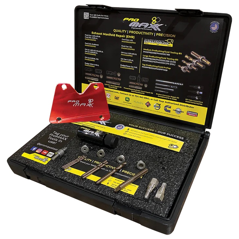The Dodge/Jeep Pentastar 3.6L V6 Exhaust Manifold Broken Bolt Repair ProKit gives technicians a productive solution for the challenging repairs they face. Quickly remove broken bolts by drilling dead on center. No need to use a center punch to mark the damaged stud. Since it can be mounted in any orientation to access every single stud, the Dodge/Jeep Pentastar 3.6L V6 is a huge help for a frustrating repair.