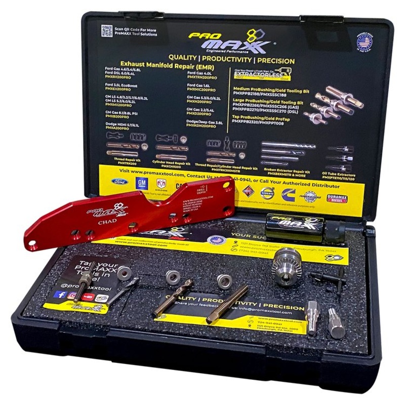 The Dodge/RAM 6.4L HEMI Exhaust Manifold Broken Bolt Repair ProKit (Chad) facilitates the removal of broken exhaust manifold bolts on Dodge/RAM 6.4L HEMI V8 Gas Engines.. This easy-to-use repair kit allows technicians to quickly and accurately remove and repair broken exhaust manifold bolts in approximately 15 minutes per broken bolts.