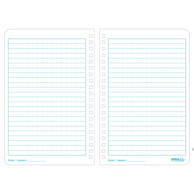 DuraRite is a synthetic paper created for use in extreme conditions. It is actuallywaterproofand can even be used under water. Now you can have a quality 4-5/8″ x 7″ sidespiral waterproof notebook. DuraRite Side SpiralNotebooks have 64Universal Pattern pages (32 sheets). Universal Pattern.