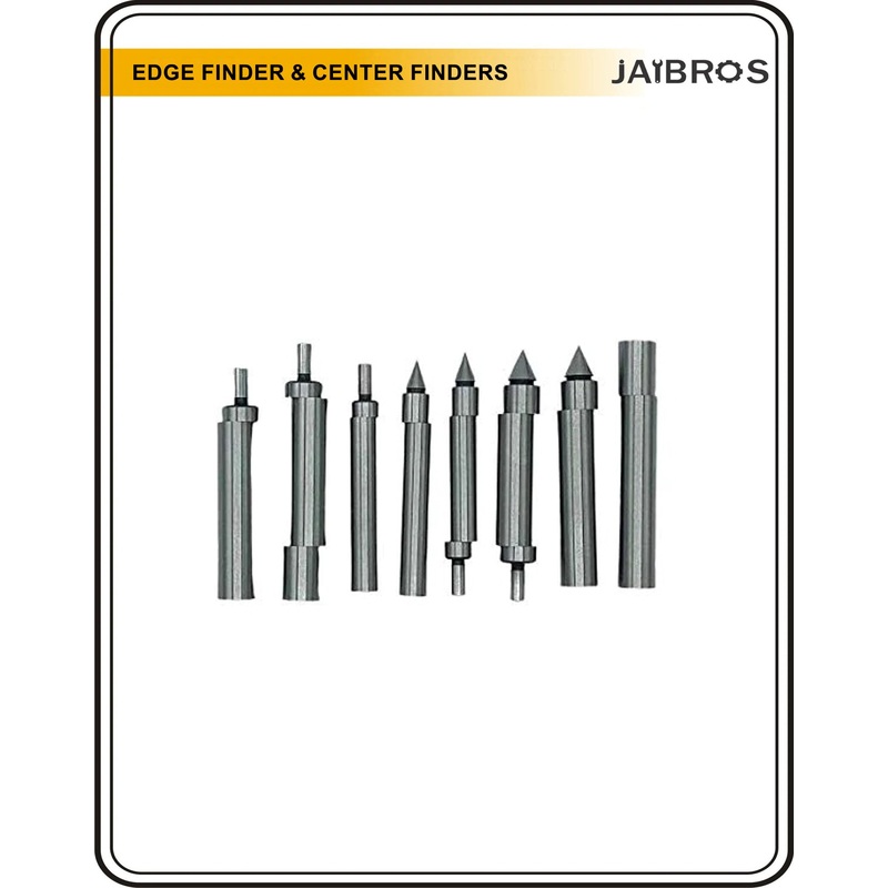 Center & edge finder set sizes as under ” Edge finder set – 8 pcs set – in a pouch packing 1. 1/2″ .5000″ plain edge finder single end 2. 1/2″ .2000″ edge finder single end 3. 3/8″ .2000″ edge finder single end 4. 1/2″ cone hole center finder single end 5. 3/8″ cone hole center finder single end 6. 1/2″ .2000″ edge finder double end 7. 3/8″ .2000″ cone center finder double end 8. 1/2″ .5000″ cone center finder double end Made from precision ground hardened tool steel.