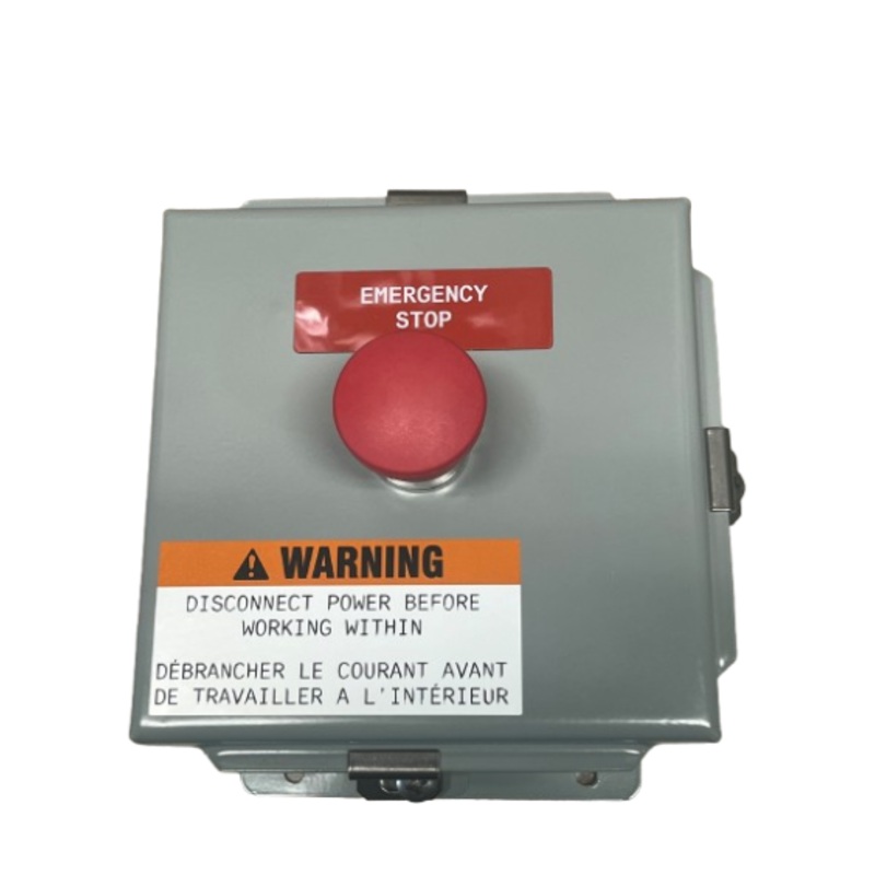 An Emergency Stopis defined as a fail-safe control switch or circuit that, when de-energized, will stop the operation of associated equipment and will shut off all potential hazards outside the main powerenclosure.