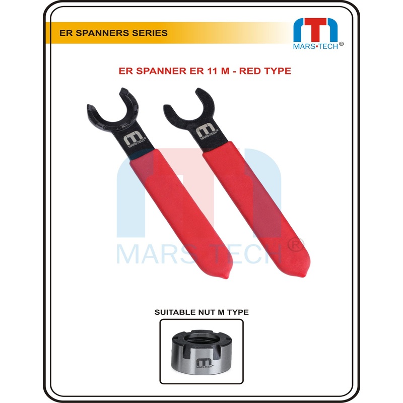 - ER11M Wrench is made from high quality alloy steel ,Thick material allows high torque without bending,5 point contact ensures no distortion of collet nut while tightening,ER11 Wrench works on all of our M Type collet chucks that take ER11 collets