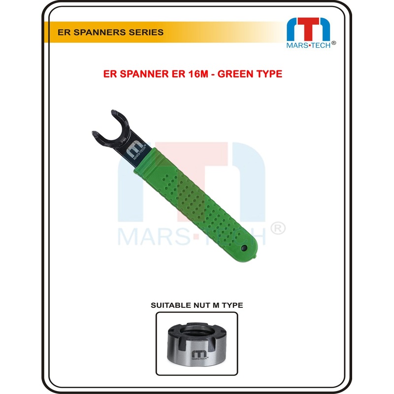 - ER16M/A/UM Wrench is made from high quality alloy steel ,Thick material allows high torque without bending,5 point contact ensures no distortion of collet nut while tightening,ER16 Wrench works on all of our M Type and A type collet chucks that take ER16 collets