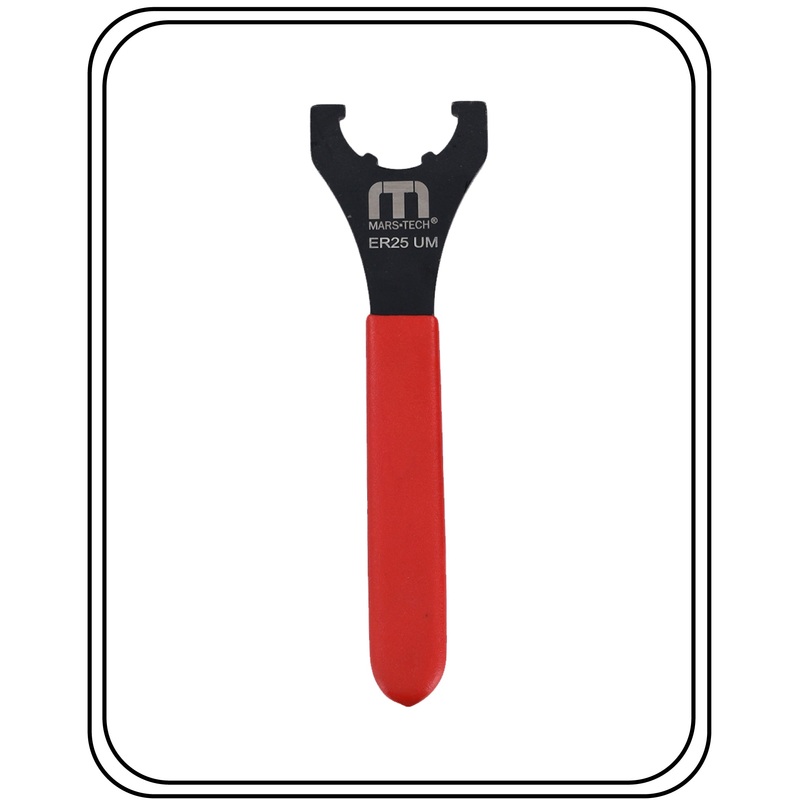 ER25M/A/UM Spanner Wrench is made from high quality alloy steel ,Thick material allows high torque without bending,4 point contact ensures no distortion of collet nut while tightening,ER25 Wrench works on all of our M Type and UM type collet chucks that take ER25 collets