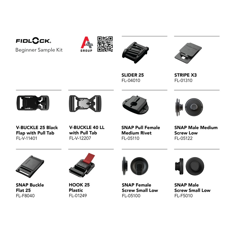 If you’re not sure which style FIDLOCK product is needed for your upcoming project. The Beginner Sample kit is your ideal starting point! Kit includes: