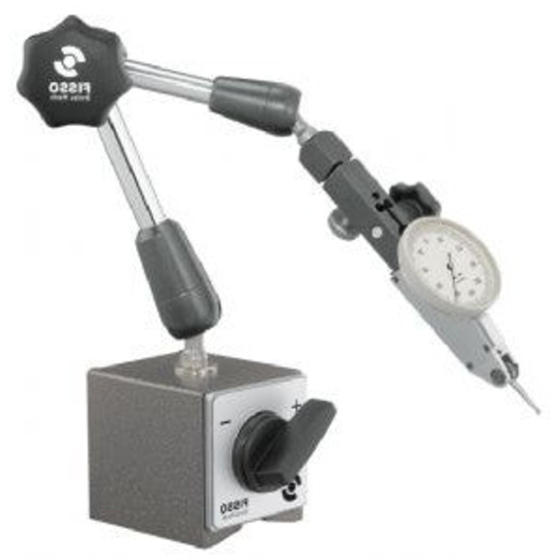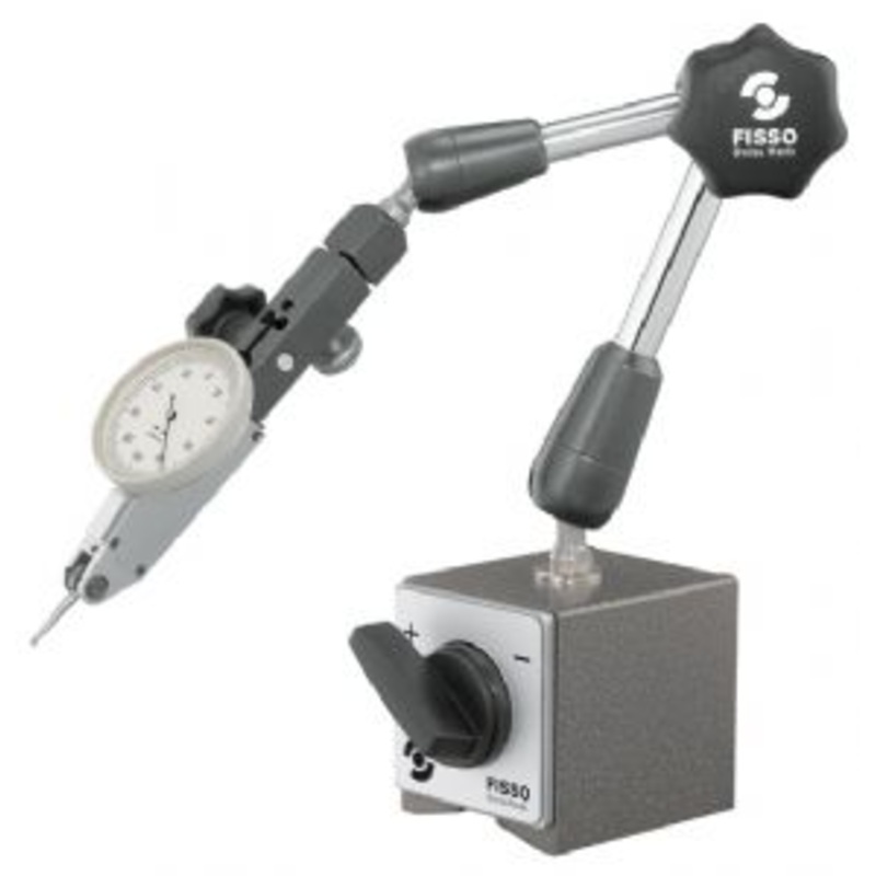 The FISSO (Swiss Made) Classic Line contains proven products with chrome-plated arm sections. Equipped with a zero-play microfine adjustment (F) with a combined holder for dial gauges and DTI’s.