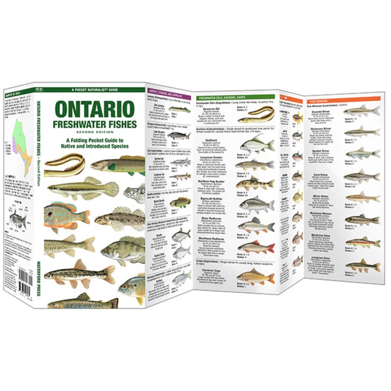 Ontario Freshwater Fishes (A Folding Pocket Guide to Native and Introduced Species) is a portable reference guide to 80 native species of freshwater fish that inhabit Ontario’s lakes and rivers. The illustrated,12-panel folding guide features a watershed map to which each species is keyed, and provides descriptions of anatomy and distinguishing features.