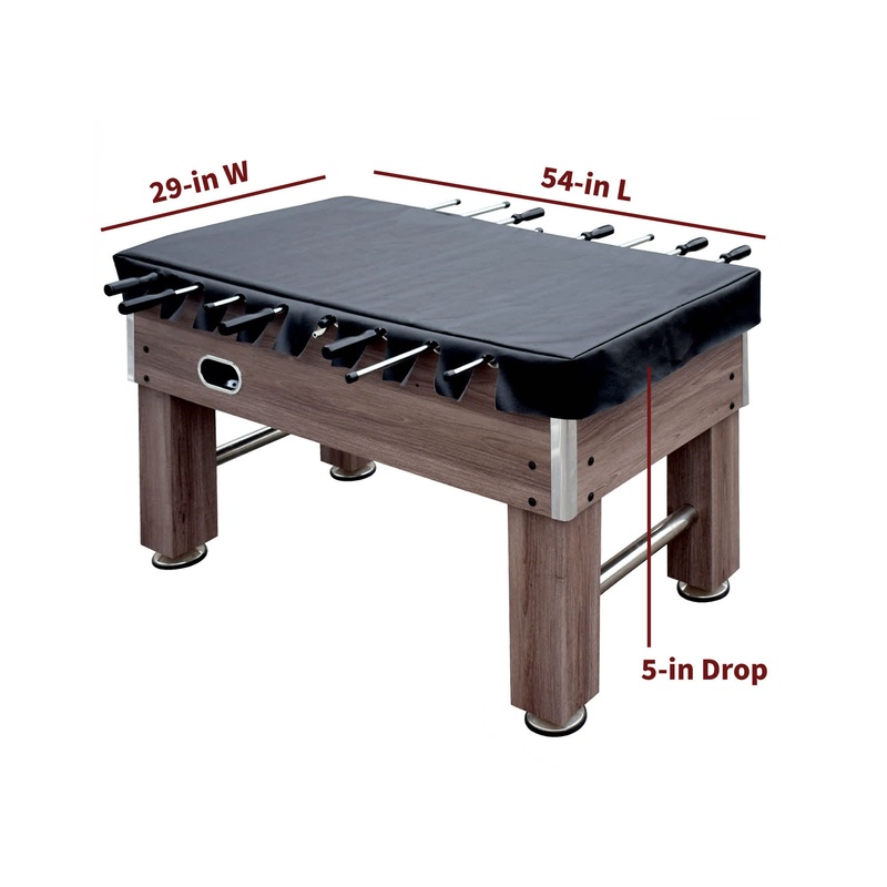 Protect your foosball table from dust, spills, and more with this 54-in Foosball Table Cover. Made with lightweight, rip-resistant synthetic leather with fabric underlining. Featuring a scalloped edge design to provide better positioning on your 54-in foosball table.