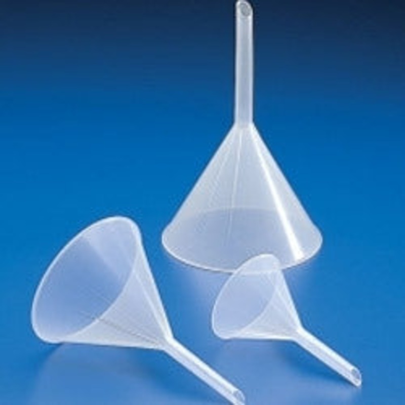 Lightweight polypropylene or high density polypropylene funnels inexpensive and great for laboratory use. 47 mm Opening