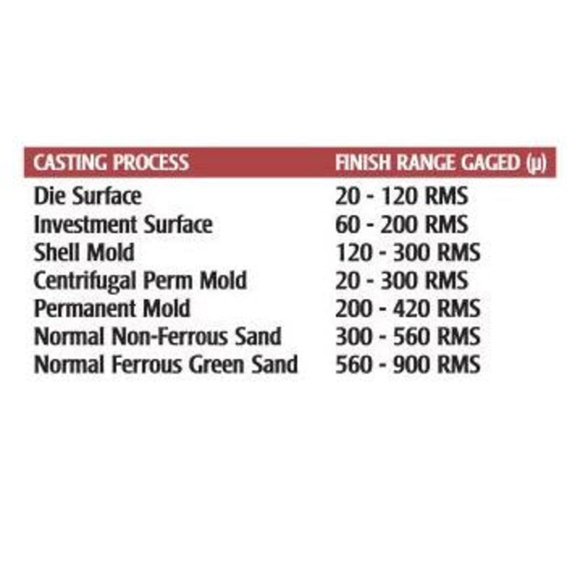 - There are nine replicated cast surface finish specimens ranging from 20 to 900 micro-inches.
